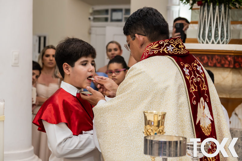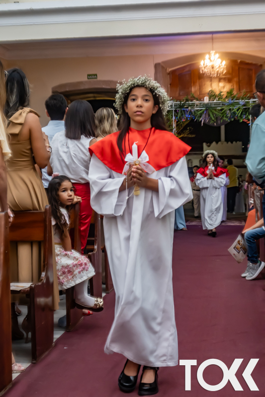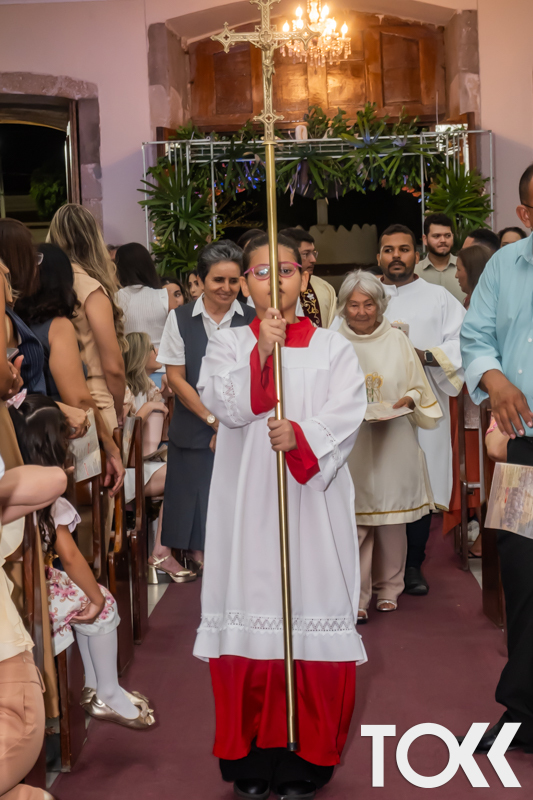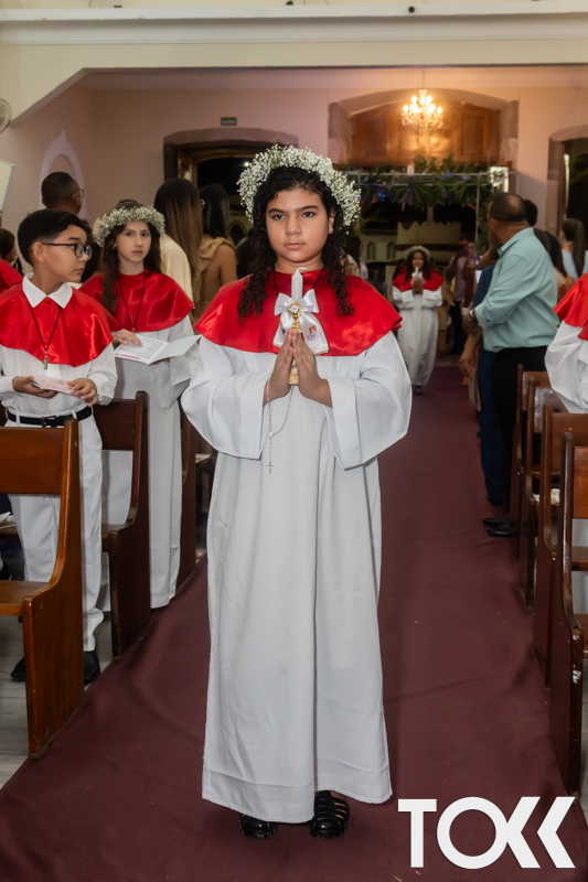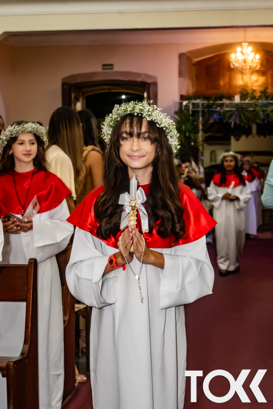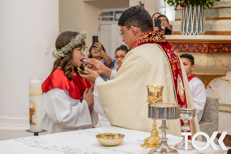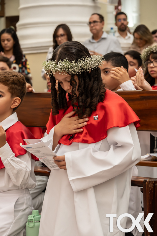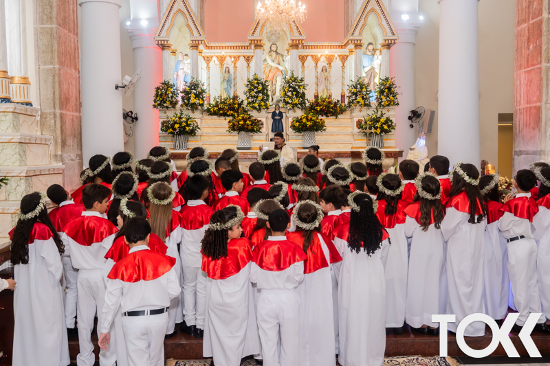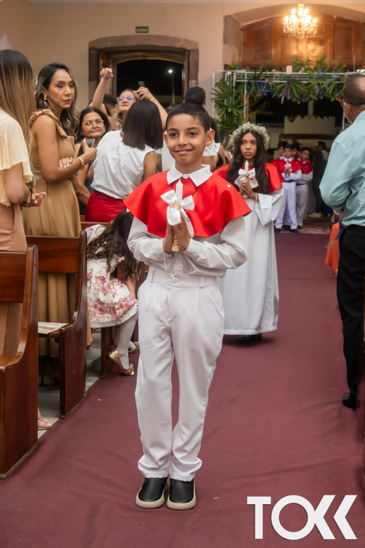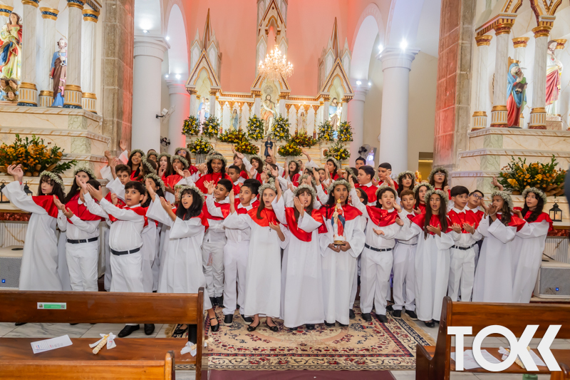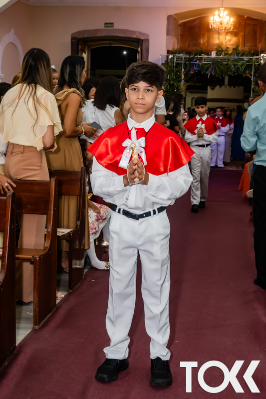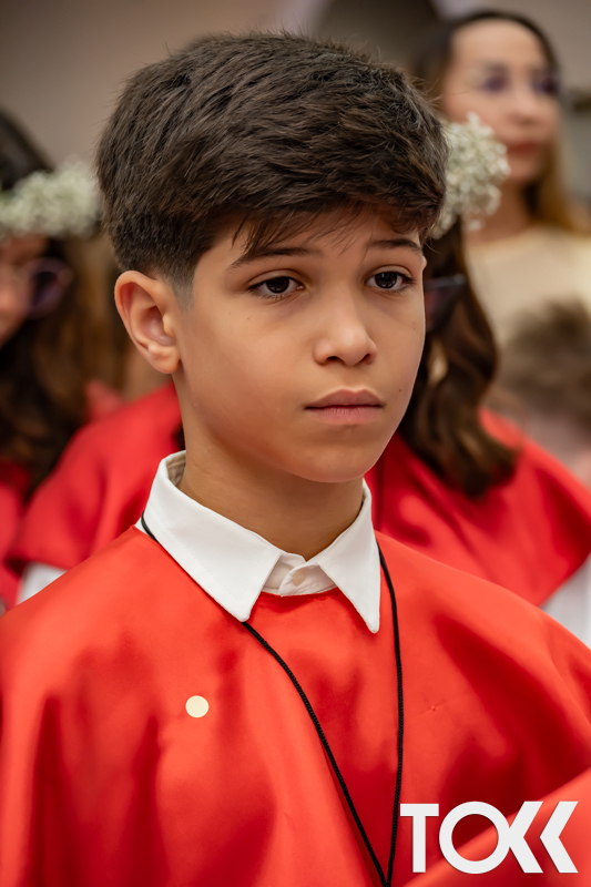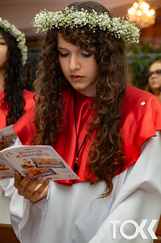 “Neste sábado, dia 22 de novembro de 2025, a Igreja Matriz São João Batista foi palco de uma celebração especial: a primeira eucaristia dos estudantes do Educandário Nossa Senhora das Vitórias(ENSV) . Com alegria e fé, os jovens receberam Jesus pela primeira vez na sagrada comunhão. A cerimônia foi marcada pela presença de familiares, amigos e professores, que acompanharam de perto essa importante etapa na vida espiritual dos estudantes. A missa foi celebrada com música, orações e reflexões que destacaram a importância da fé e do amor de Deus em nossas vidas. Nessa ocasião, os estudantes renovaram suas promessas batismais e receberam a hóstia consagrada, simbolizando a união com Cristo. Foi um momento de grande emoção e gratidão para todos os presentes. Parabéns aos estudantes da escola Educandário Nossa Senhora das Vitórias por essa conquista espiritual! Que essa primeira eucaristia seja o início de uma jornada de fé e amor a Deus.” Fotos para www.tokk.com.br foram cedidas gentilmente por Carlos Eduardo.