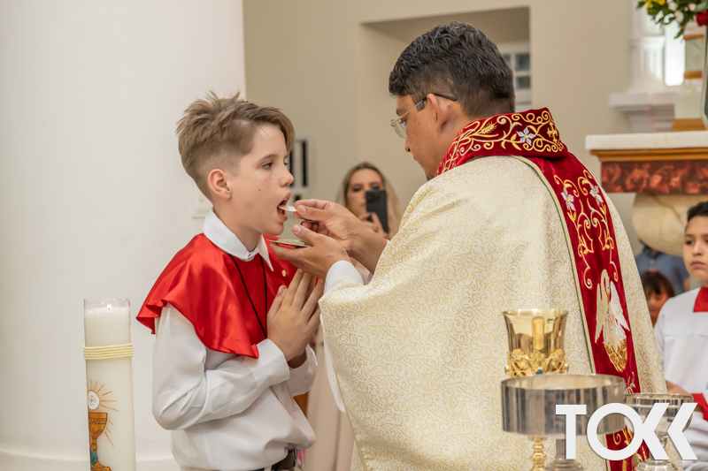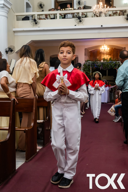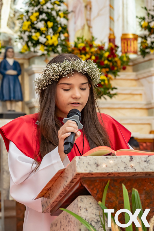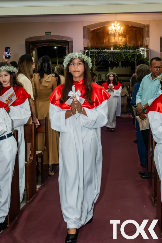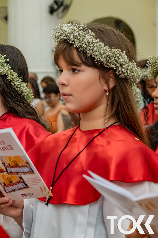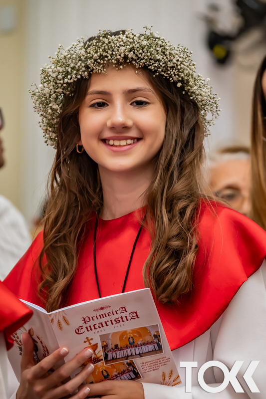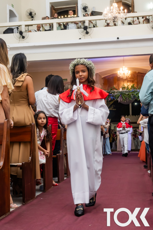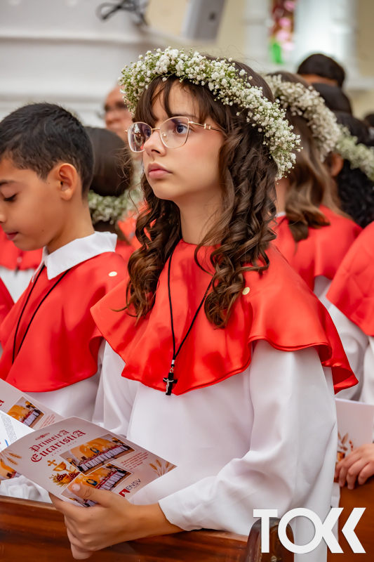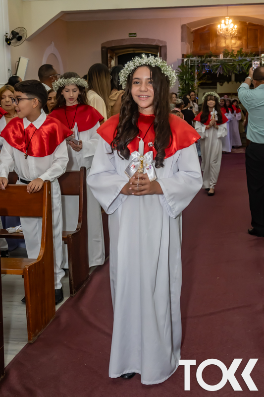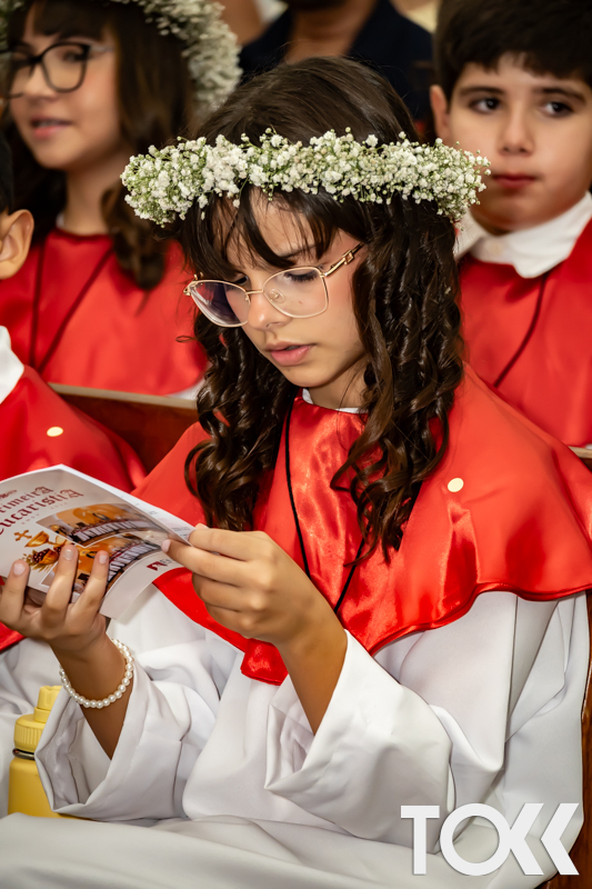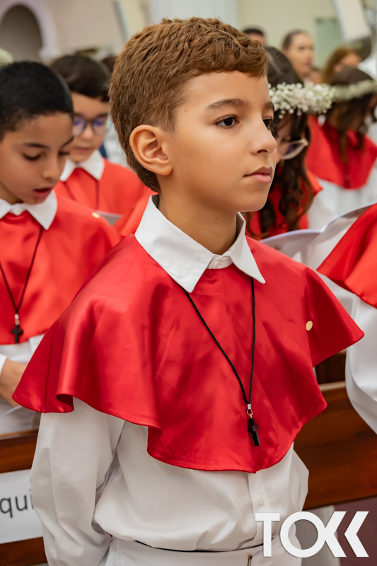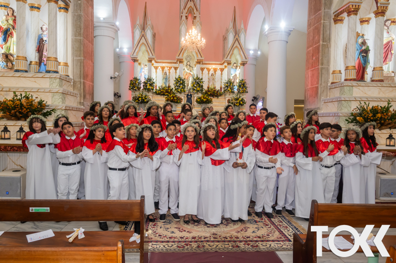 “Neste sábado, dia 22 de novembro de 2025, a Igreja Matriz São João Batista foi palco de uma celebração especial: a primeira eucaristia dos estudantes do Educandário Nossa Senhora das Vitórias(ENSV) . Com alegria e fé, os jovens receberam Jesus pela primeira vez na sagrada comunhão. A cerimônia foi marcada pela presença de familiares, amigos e professores, que acompanharam de perto essa importante etapa na vida espiritual dos estudantes. A missa foi celebrada com música, orações e reflexões que destacaram a importância da fé e do amor de Deus em nossas vidas. Nessa ocasião, os estudantes renovaram suas promessas batismais e receberam a hóstia consagrada, simbolizando a união com Cristo. Foi um momento de grande emoção e gratidão para todos os presentes. Parabéns aos estudantes da escola Educandário Nossa Senhora das Vitórias por essa conquista espiritual! Que essa primeira eucaristia seja o início de uma jornada de fé e amor a Deus.” Fotos para www.tokk.com.br foram cedidas gentilmente por Carlos Eduardo.