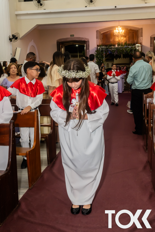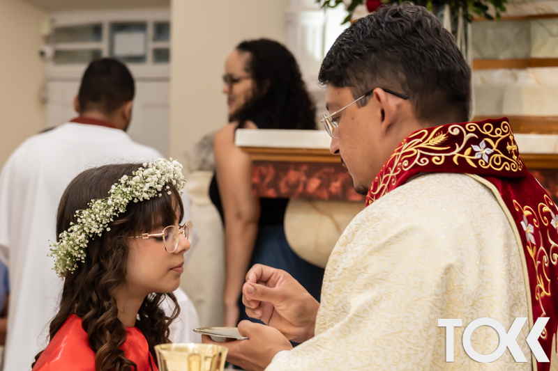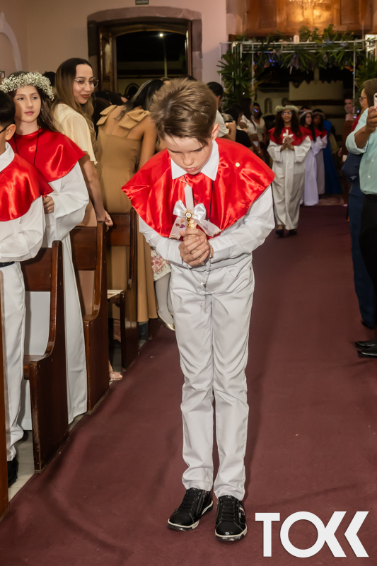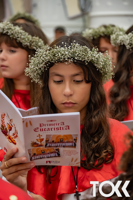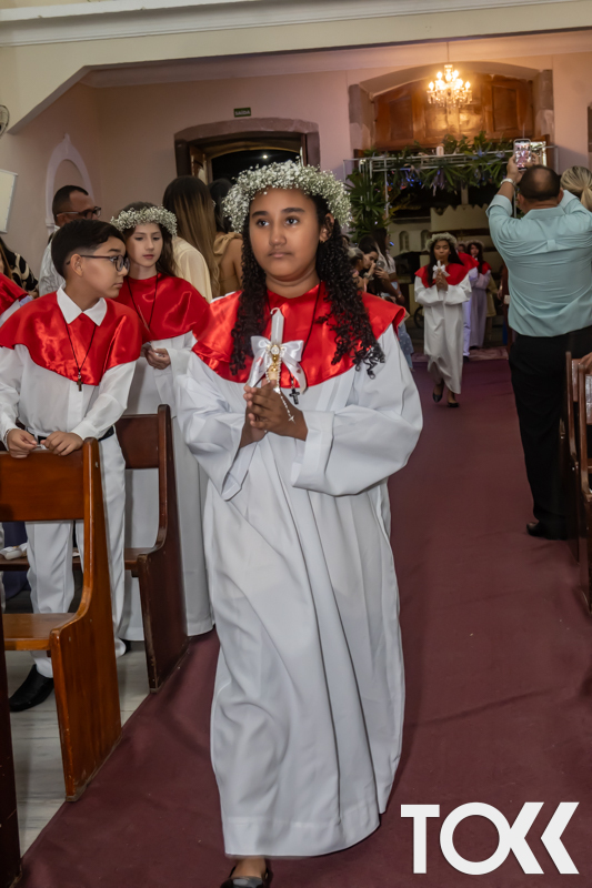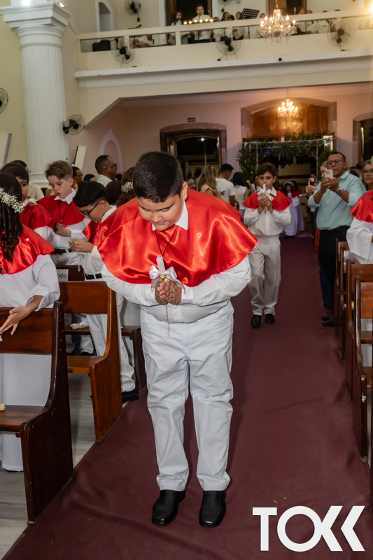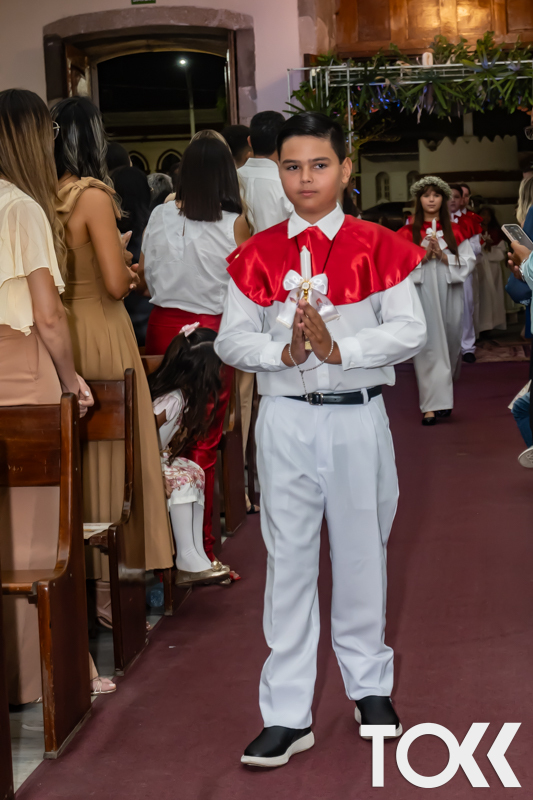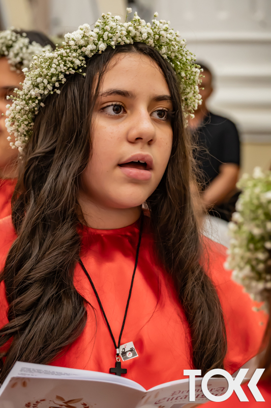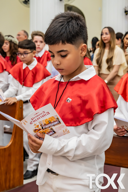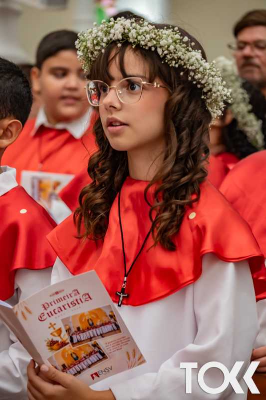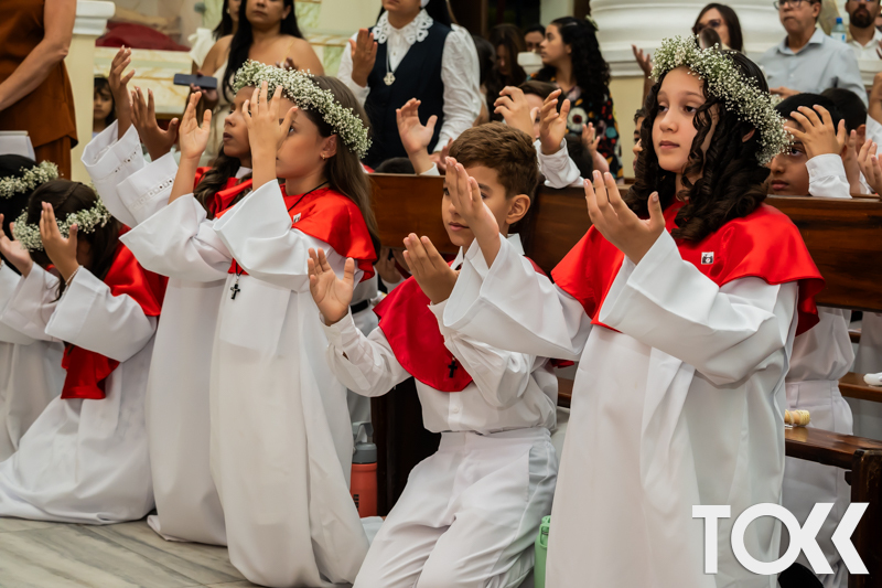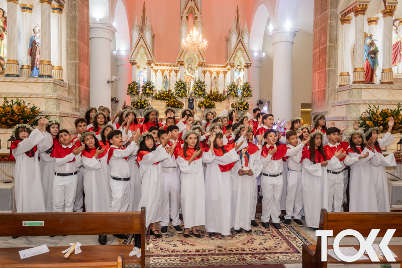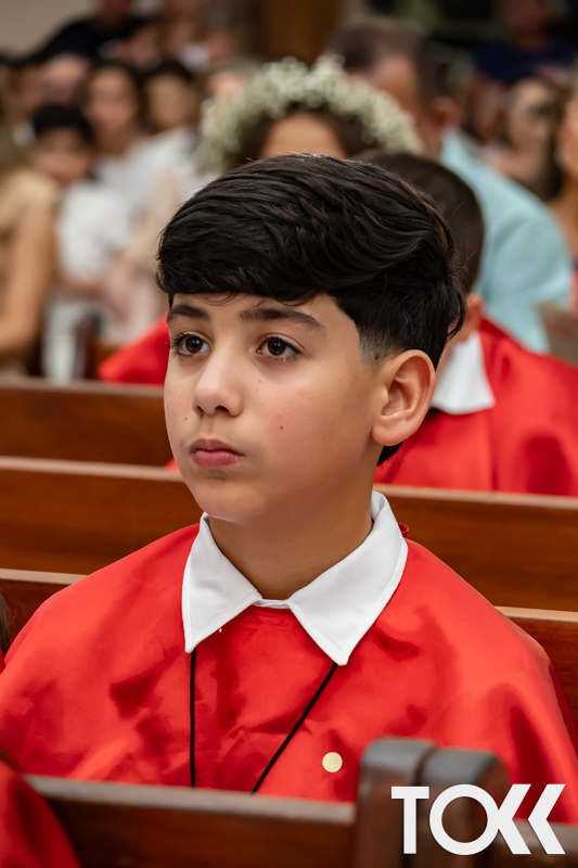 “Neste sábado, dia 22 de novembro de 2025, a Igreja Matriz São João Batista foi palco de uma celebração especial: a primeira eucaristia dos estudantes do Educandário Nossa Senhora das Vitórias(ENSV) . Com alegria e fé, os jovens receberam Jesus pela primeira vez na sagrada comunhão. A cerimônia foi marcada pela presença de familiares, amigos e professores, que acompanharam de perto essa importante etapa na vida espiritual dos estudantes. A missa foi celebrada com música, orações e reflexões que destacaram a importância da fé e do amor de Deus em nossas vidas. Nessa ocasião, os estudantes renovaram suas promessas batismais e receberam a hóstia consagrada, simbolizando a união com Cristo. Foi um momento de grande emoção e gratidão para todos os presentes. Parabéns aos estudantes da escola Educandário Nossa Senhora das Vitórias por essa conquista espiritual! Que essa primeira eucaristia seja o início de uma jornada de fé e amor a Deus.” Fotos para www.tokk.com.br foram cedidas gentilmente por Carlos Eduardo.