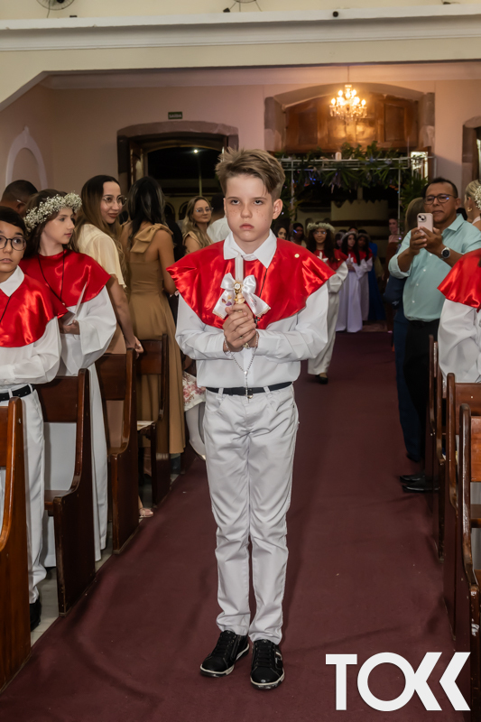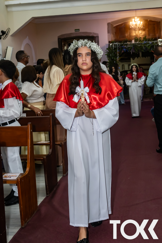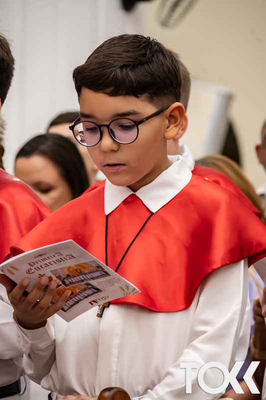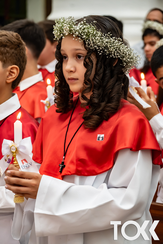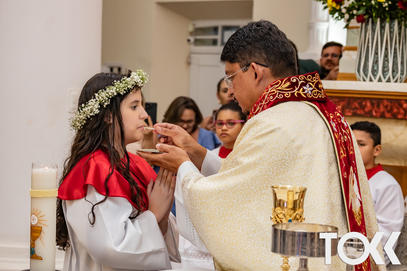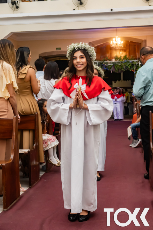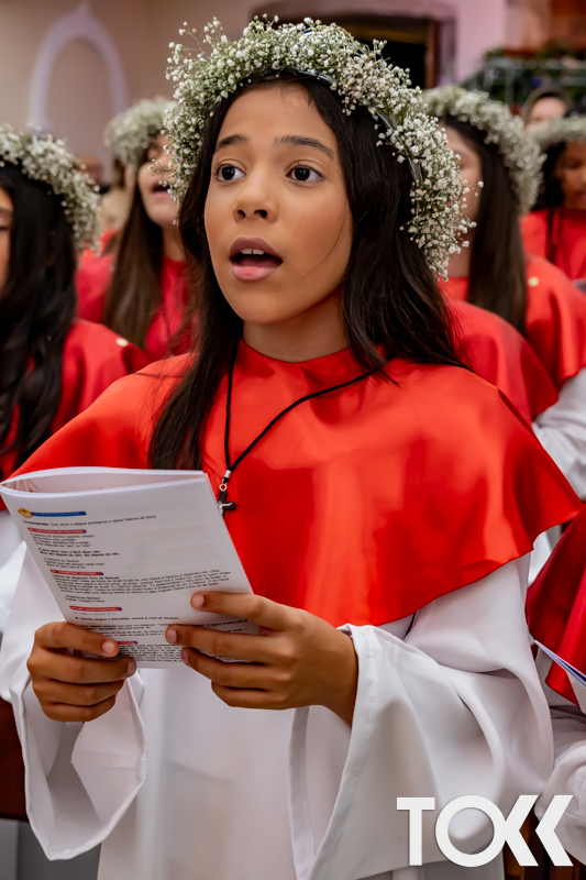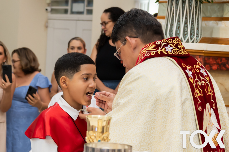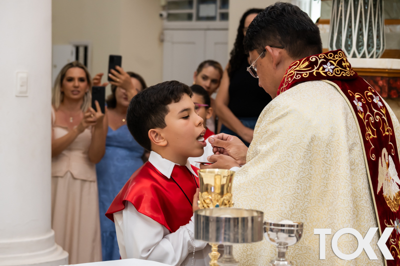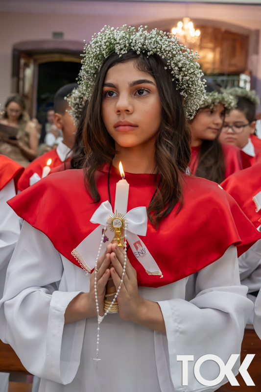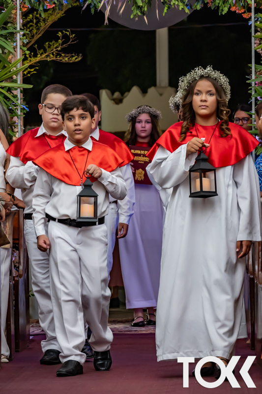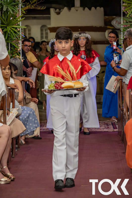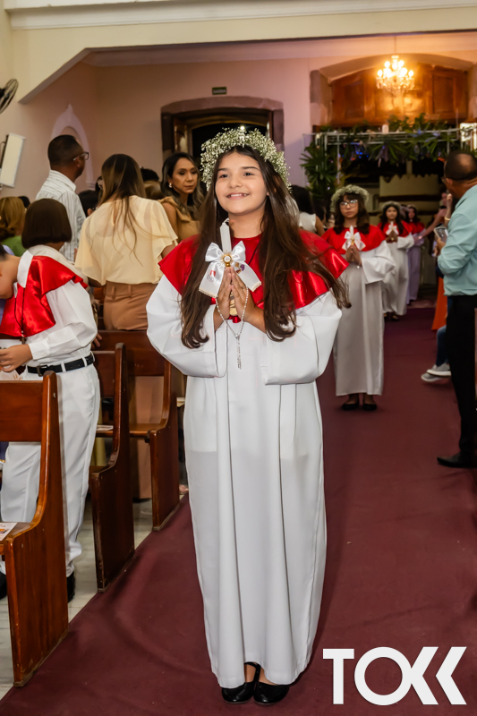 “Neste sábado, dia 22 de novembro de 2025, a Igreja Matriz São João Batista foi palco de uma celebração especial: a primeira eucaristia dos estudantes do Educandário Nossa Senhora das Vitórias(ENSV) . Com alegria e fé, os jovens receberam Jesus pela primeira vez na sagrada comunhão. A cerimônia foi marcada pela presença de familiares, amigos e professores, que acompanharam de perto essa importante etapa na vida espiritual dos estudantes. A missa foi celebrada com música, orações e reflexões que destacaram a importância da fé e do amor de Deus em nossas vidas. Nessa ocasião, os estudantes renovaram suas promessas batismais e receberam a hóstia consagrada, simbolizando a união com Cristo. Foi um momento de grande emoção e gratidão para todos os presentes. Parabéns aos estudantes da escola Educandário Nossa Senhora das Vitórias por essa conquista espiritual! Que essa primeira eucaristia seja o início de uma jornada de fé e amor a Deus.” Fotos para www.tokk.com.br foram cedidas gentilmente por Carlos Eduardo.