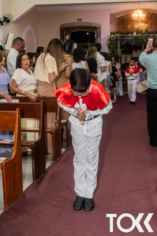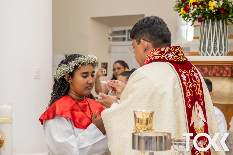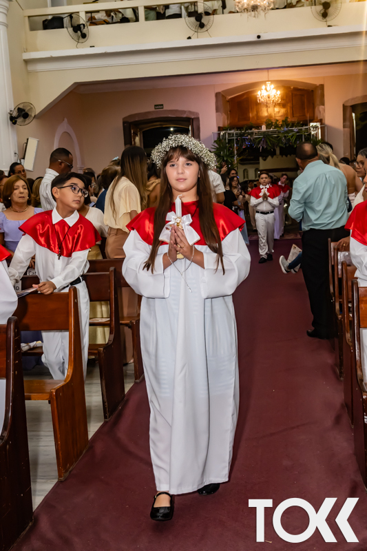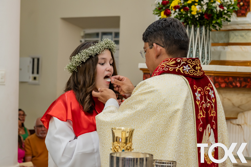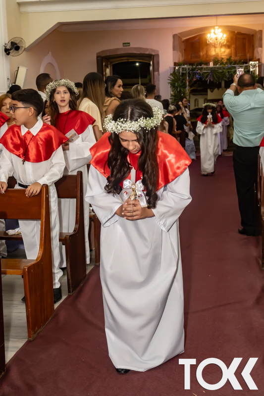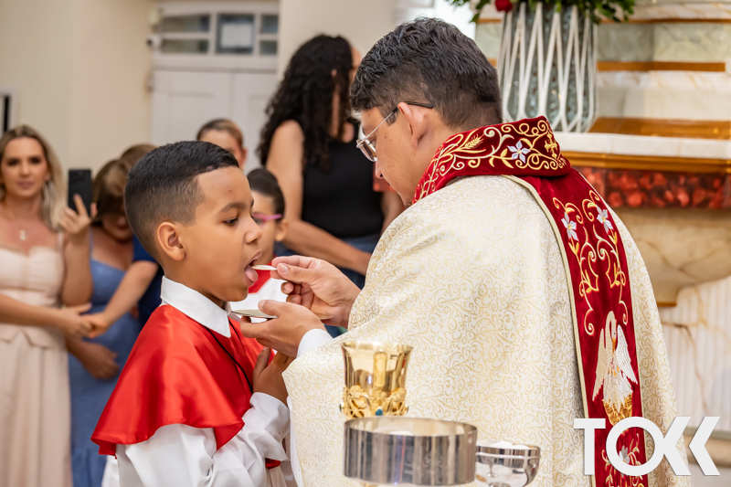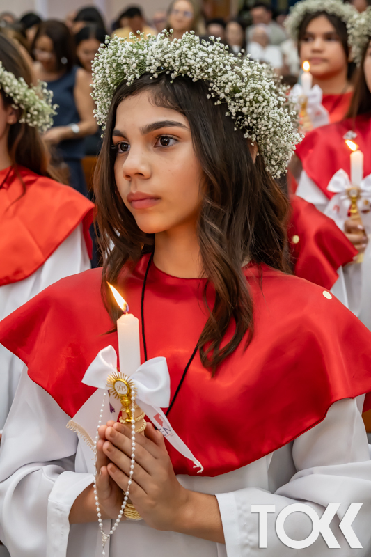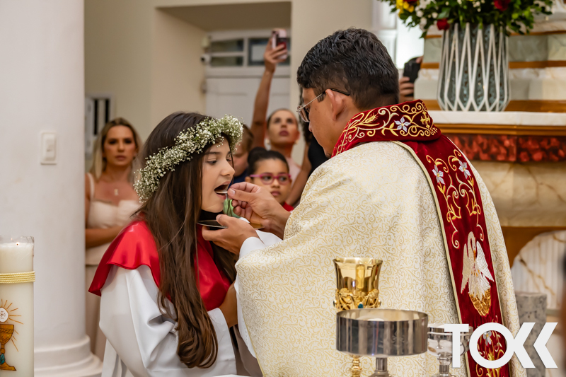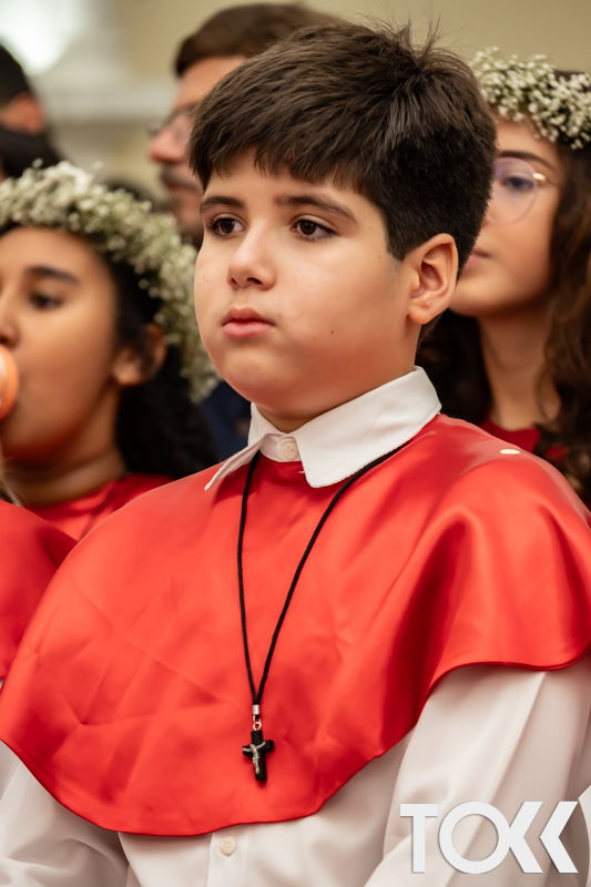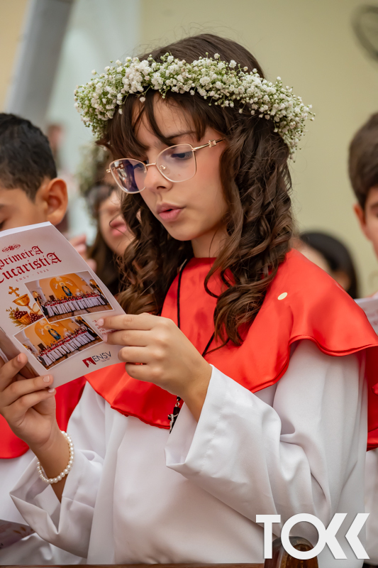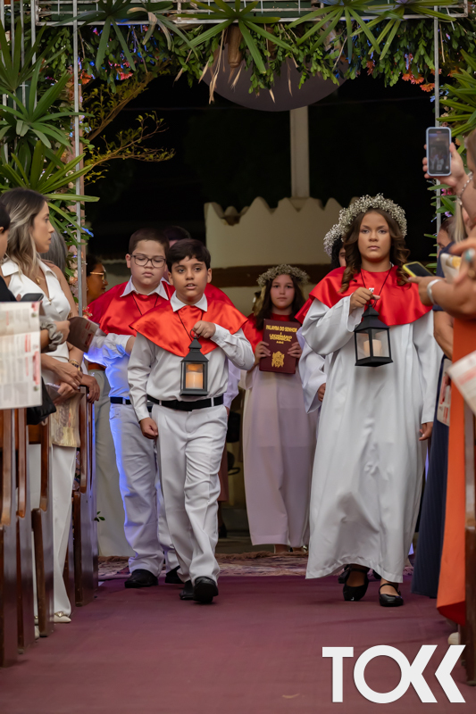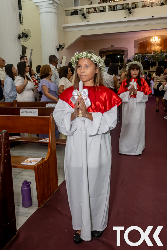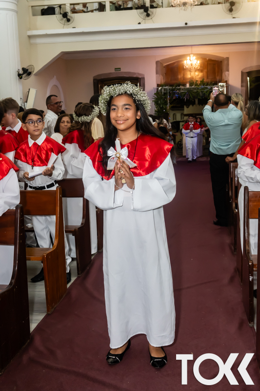 “Neste sábado, dia 22 de novembro de 2025, a Igreja Matriz São João Batista foi palco de uma celebração especial: a primeira eucaristia dos estudantes do Educandário Nossa Senhora das Vitórias(ENSV) . Com alegria e fé, os jovens receberam Jesus pela primeira vez na sagrada comunhão. A cerimônia foi marcada pela presença de familiares, amigos e professores, que acompanharam de perto essa importante etapa na vida espiritual dos estudantes. A missa foi celebrada com música, orações e reflexões que destacaram a importância da fé e do amor de Deus em nossas vidas. Nessa ocasião, os estudantes renovaram suas promessas batismais e receberam a hóstia consagrada, simbolizando a união com Cristo. Foi um momento de grande emoção e gratidão para todos os presentes. Parabéns aos estudantes da escola Educandário Nossa Senhora das Vitórias por essa conquista espiritual! Que essa primeira eucaristia seja o início de uma jornada de fé e amor a Deus.” Fotos para www.tokk.com.br foram cedidas gentilmente por Carlos Eduardo.