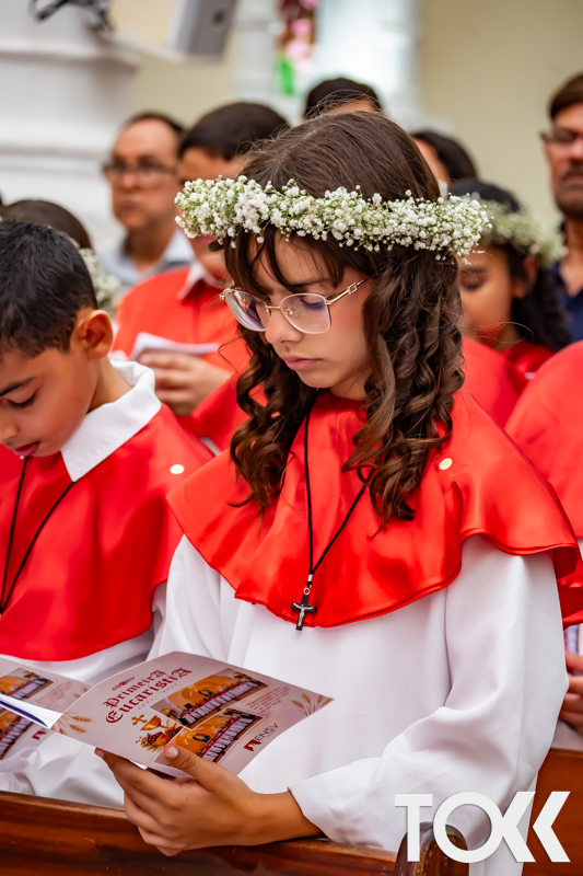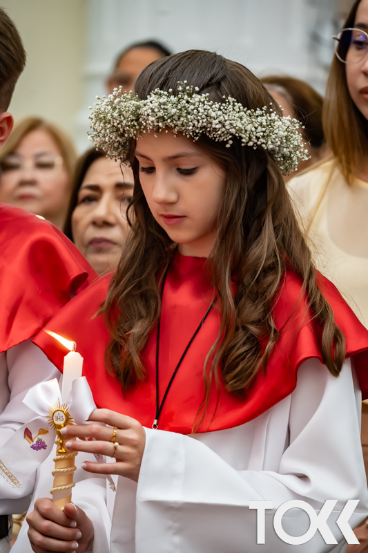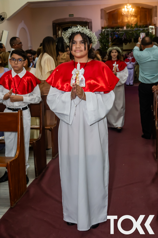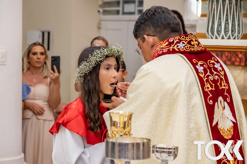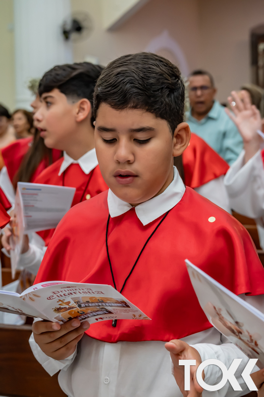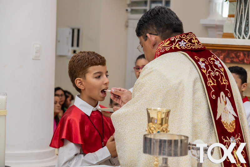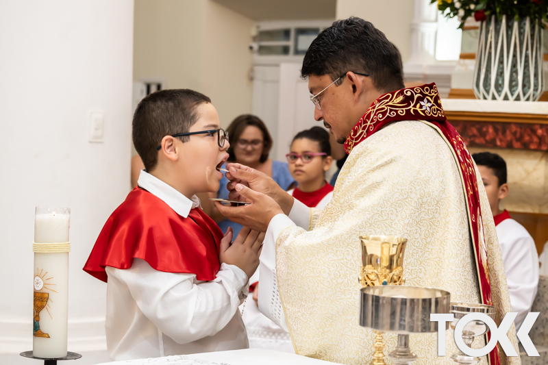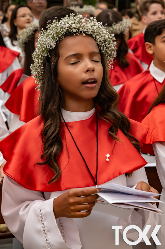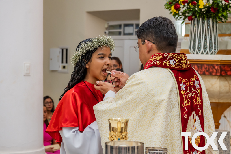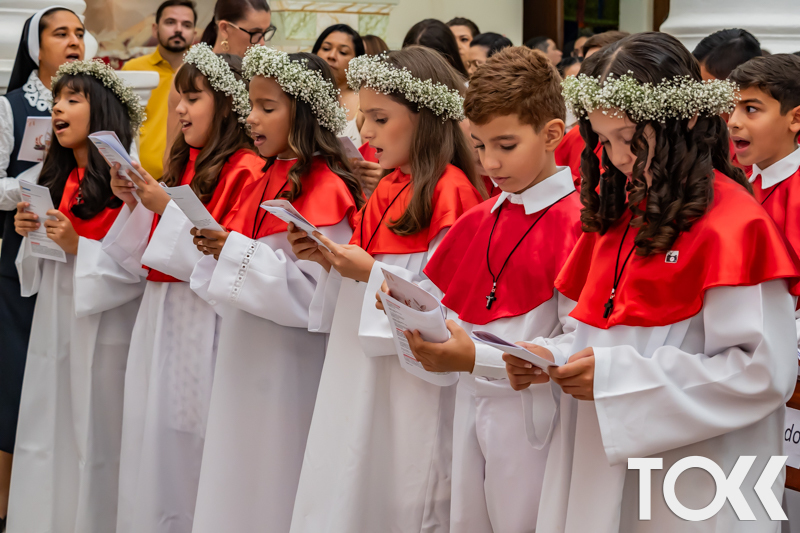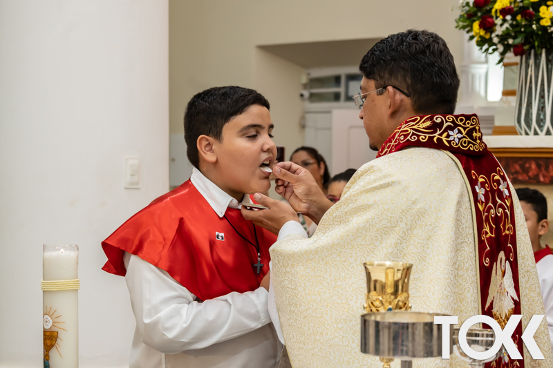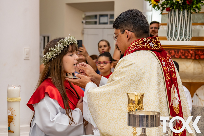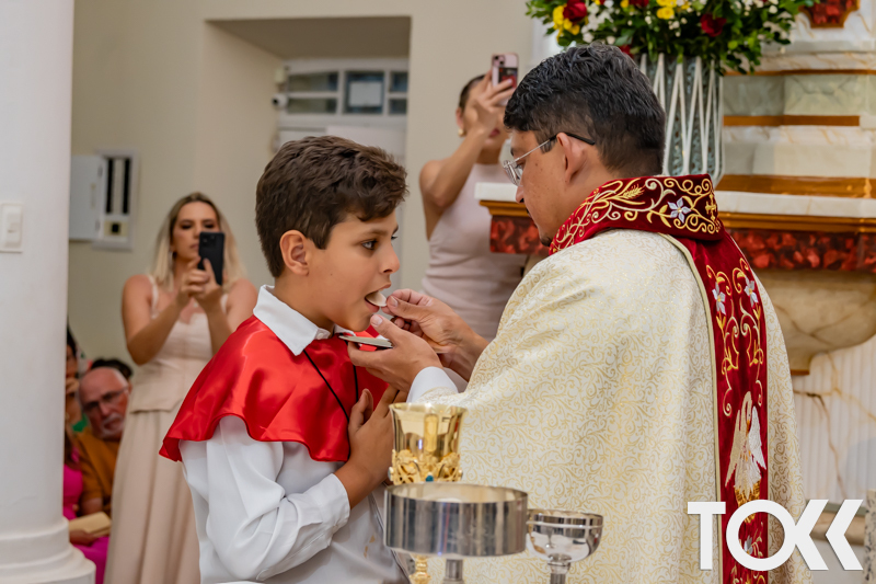 “Neste sábado, dia 22 de novembro de 2025, a Igreja Matriz São João Batista foi palco de uma celebração especial: a primeira eucaristia dos estudantes do Educandário Nossa Senhora das Vitórias(ENSV) . Com alegria e fé, os jovens receberam Jesus pela primeira vez na sagrada comunhão. A cerimônia foi marcada pela presença de familiares, amigos e professores, que acompanharam de perto essa importante etapa na vida espiritual dos estudantes. A missa foi celebrada com música, orações e reflexões que destacaram a importância da fé e do amor de Deus em nossas vidas. Nessa ocasião, os estudantes renovaram suas promessas batismais e receberam a hóstia consagrada, simbolizando a união com Cristo. Foi um momento de grande emoção e gratidão para todos os presentes. Parabéns aos estudantes da escola Educandário Nossa Senhora das Vitórias por essa conquista espiritual! Que essa primeira eucaristia seja o início de uma jornada de fé e amor a Deus.” Fotos para www.tokk.com.br foram cedidas gentilmente por Carlos Eduardo.