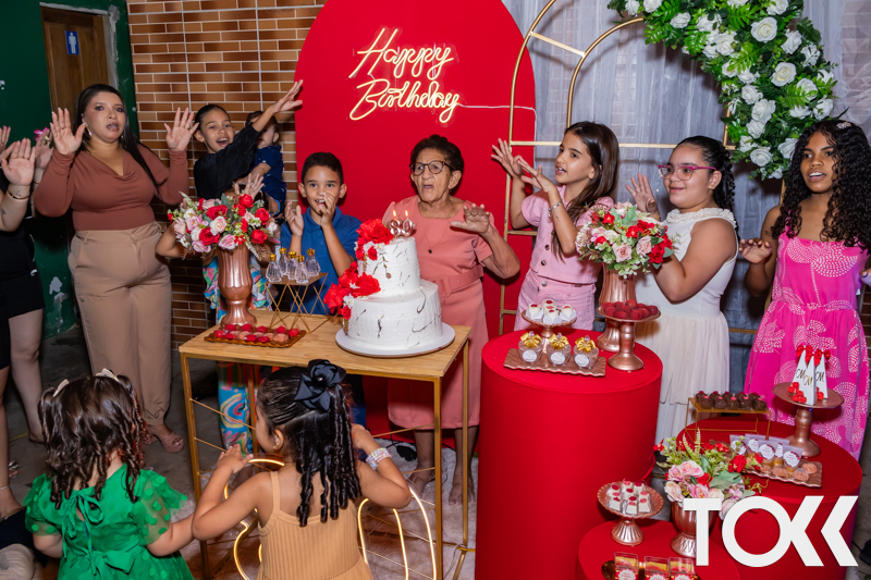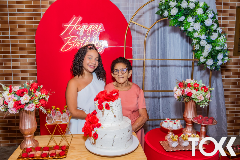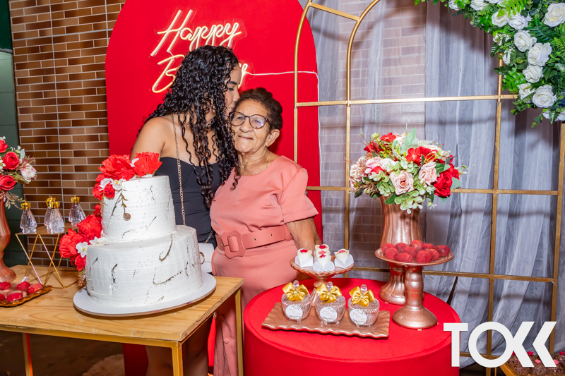 A decoração ficou por conta de Rafaela Medeiros, que trouxe beleza e delicadeza aos ambientes. O bolo, assinado por Débora Oliveira, encantou tanto pelo sabor quanto pela apresentação, enquanto os doces foram produzidos com primor pela Doces D’Ju. O buffet foi preparado com dedicação pela própria família, tornando a ocasião ainda mais especial.