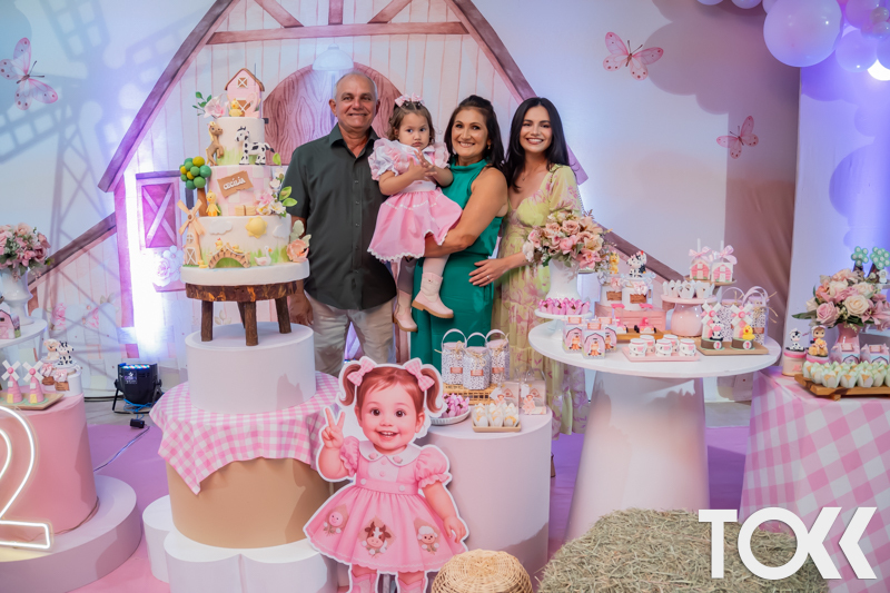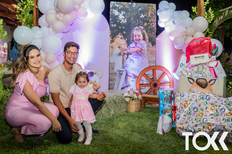 O último sábado, 1º de novembro, foi de muita alegria e encanto no Jardim Secreto, onde a doce Maria Cecília, filha de Clara e Joaci Filho, celebrou seus 2 aninhos com o encantador tema Fazendinha. A decoração, criada com todo capricho pela Decore Emoções, transformou o espaço em um verdadeiro cenário campestre cheio de cores, bichinhos e detalhes encantadores. A Orion Iluminações trouxe um toque especial com uma iluminação que deixou tudo ainda mais mágico. O sabor ficou por conta do delicioso buffet de Eliene, dos doces personalizados de Kesia Albano e dos tradicionais doces e bolo preparados com carinho por Tarcilia Cavalcante. Os mimos encantaram a todos, com criações da Meartsembiscuit, vovó Lia e os delicados scraps da Bendita JB. As fofas lancheirinhas personalizadas foram assinadas por Abimael Bolsas. A diversão das crianças ficou garantida com o parque infantil da Menezes Eventos, que trouxe ainda mais alegria à comemoração. Os melhores momentos dessa linda festa foram registrados por Kllebson Ribeiro e estão disponíveis no site www.tokk.com.br