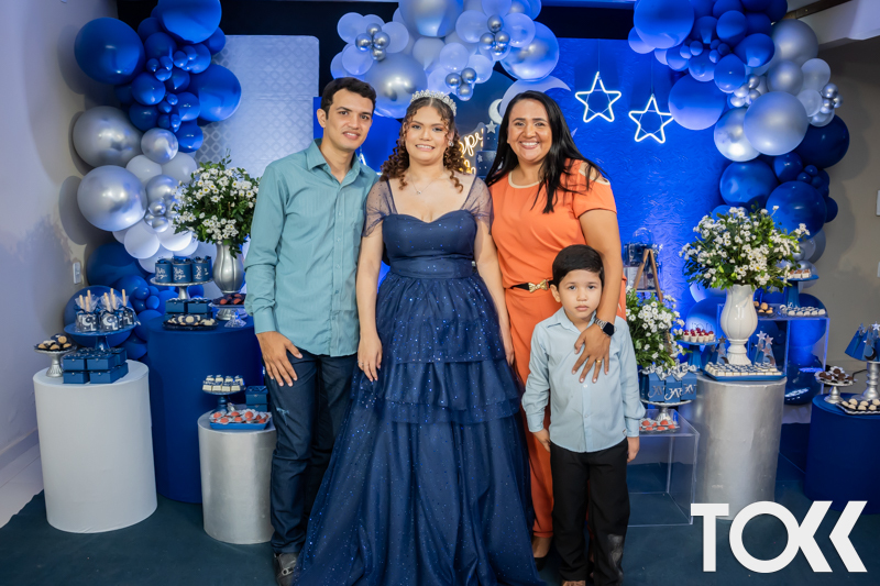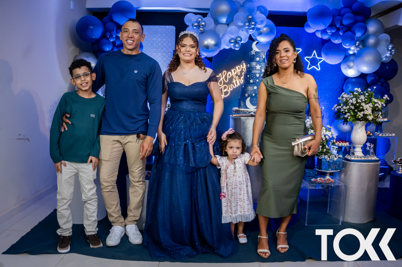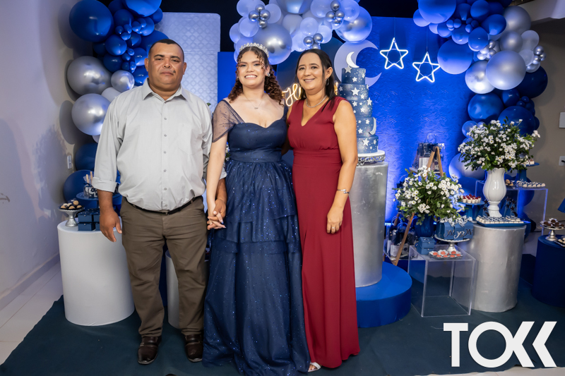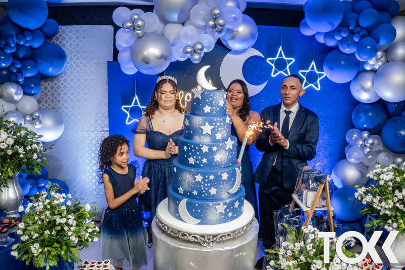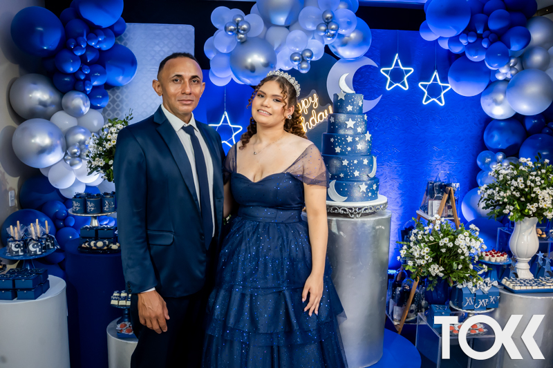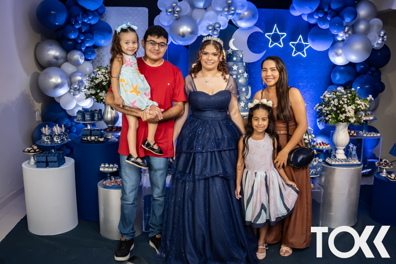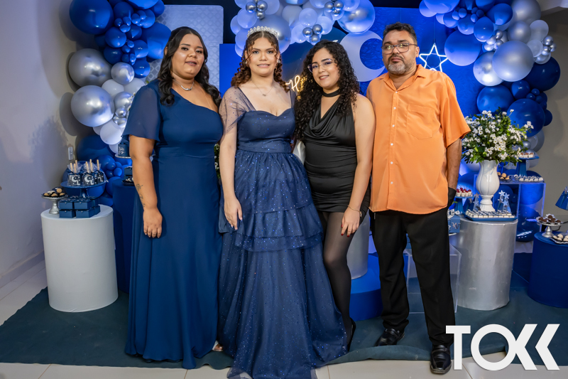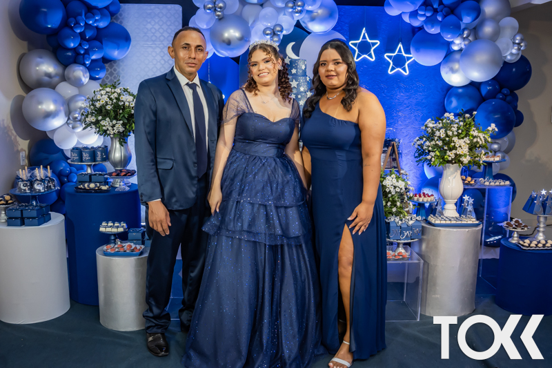 No último sábado, 07 de junho, aconteceu a tão esperada celebração dos 15 anos de Lyvya Rocha, uma noite marcada por encanto, emoção e sofisticação. Filha de Luciany Rocha e Francisco Aldenir, Lyvya recebeu familiares e amigos no Espaço Kesia Albano, em uma festa que teve como temática a beleza de uma “noite estrelada”.