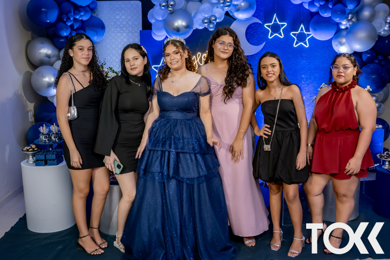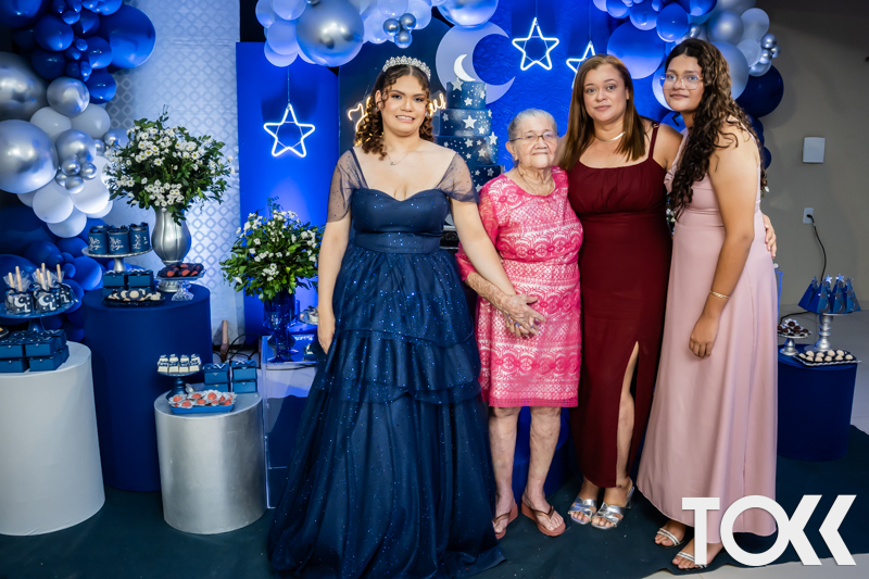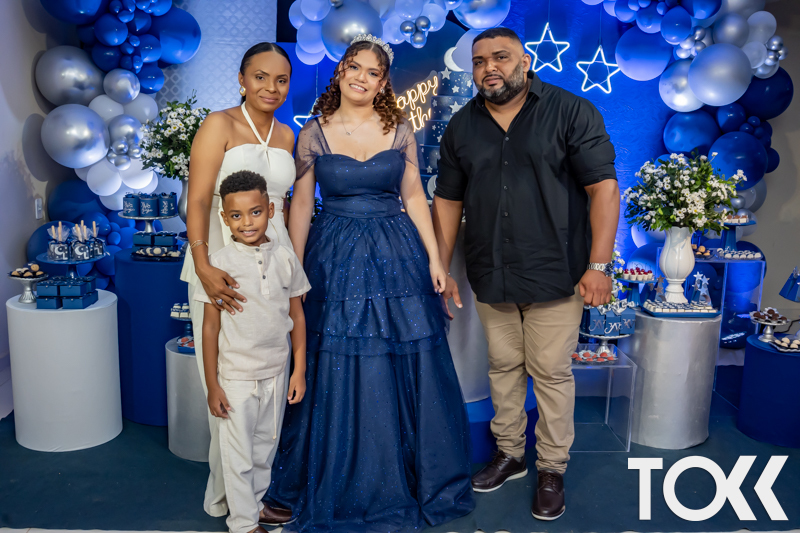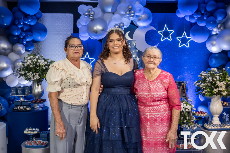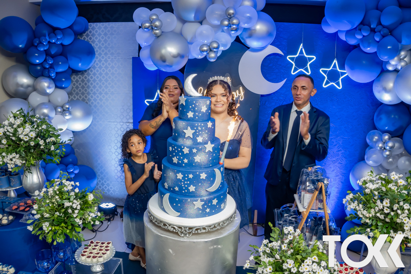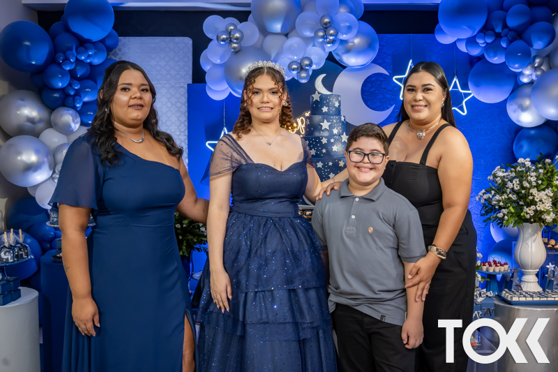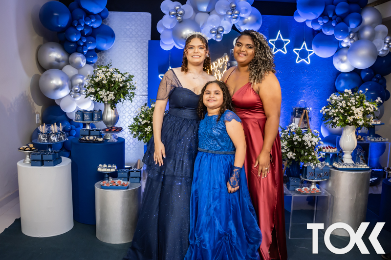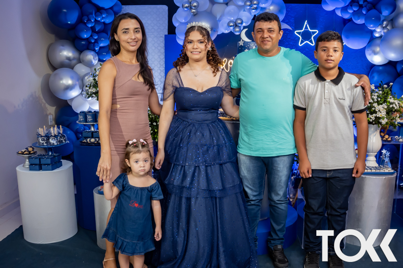 No último sábado, 07 de junho, aconteceu a tão esperada celebração dos 15 anos de Lyvya Rocha, uma noite marcada por encanto, emoção e sofisticação. Filha de Luciany Rocha e Francisco Aldenir, Lyvya recebeu familiares e amigos no Espaço Kesia Albano, em uma festa que teve como temática a beleza de uma “noite estrelada”.