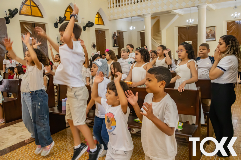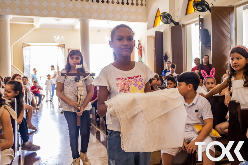 O Educandário Nossa Senhora das Vitórias realizou, nesta quinta-feira, uma emocionante celebração de Páscoa com seus alunos da Educação Infantil e do Ensino Fundamental Anos Iniciais. O momento, repleto de fé e alegria, reforçou o verdadeiro significado da data: a renovação da esperança e do amor. Nossa equipe acompanhou de perto essa manhã especial e registrou cada instante de fé e emoção. Fotos cedidas gentilmente por Carlos Eduardo.